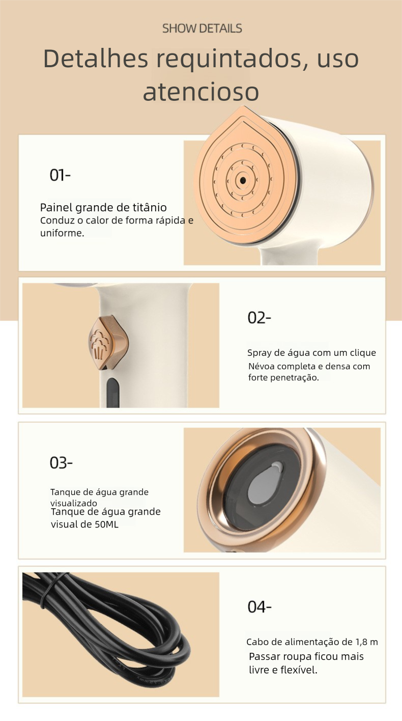 Vaporizador de Roupas Portátil com Spray | Ferro a Vapor Manual Seco e Úmido | Compacto e Prático | Padrão Europeu e Americano