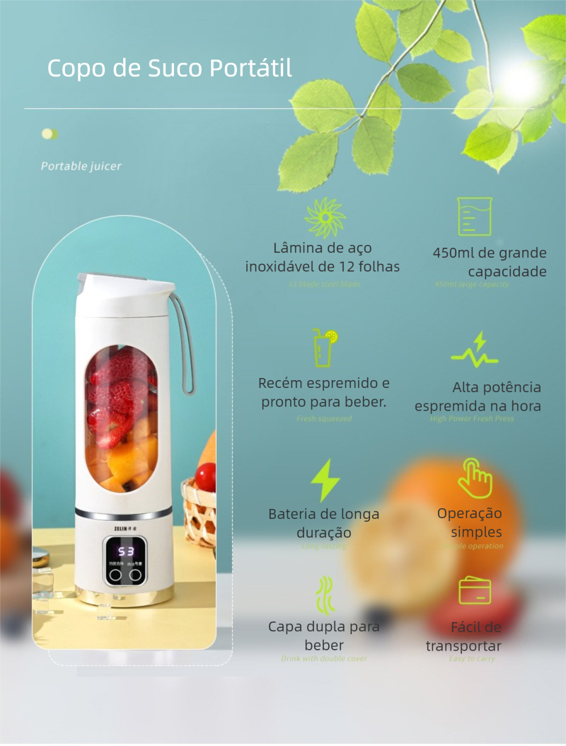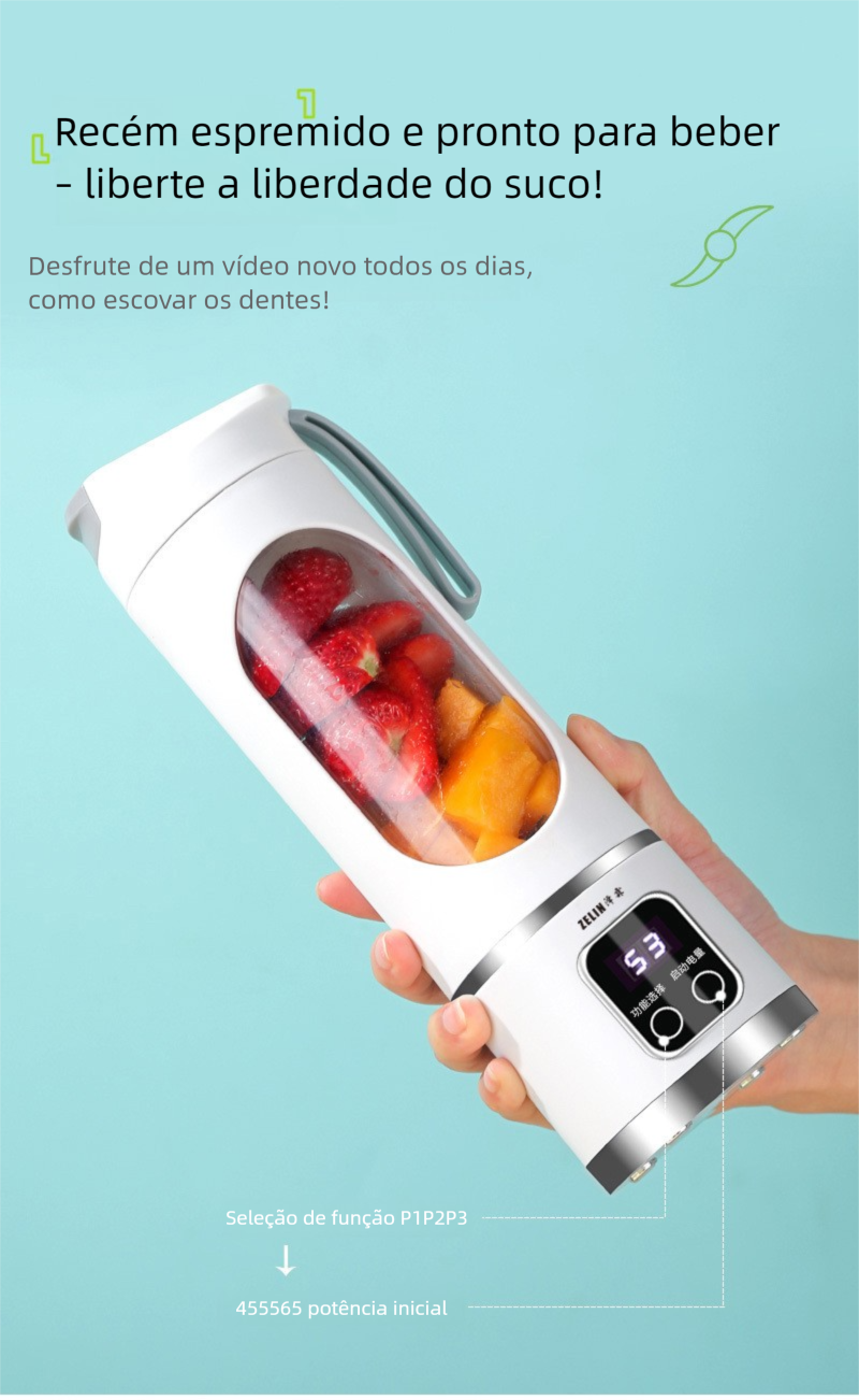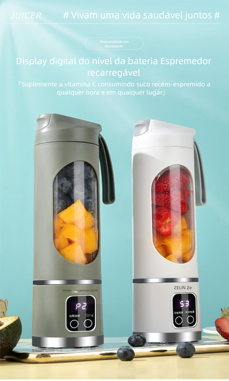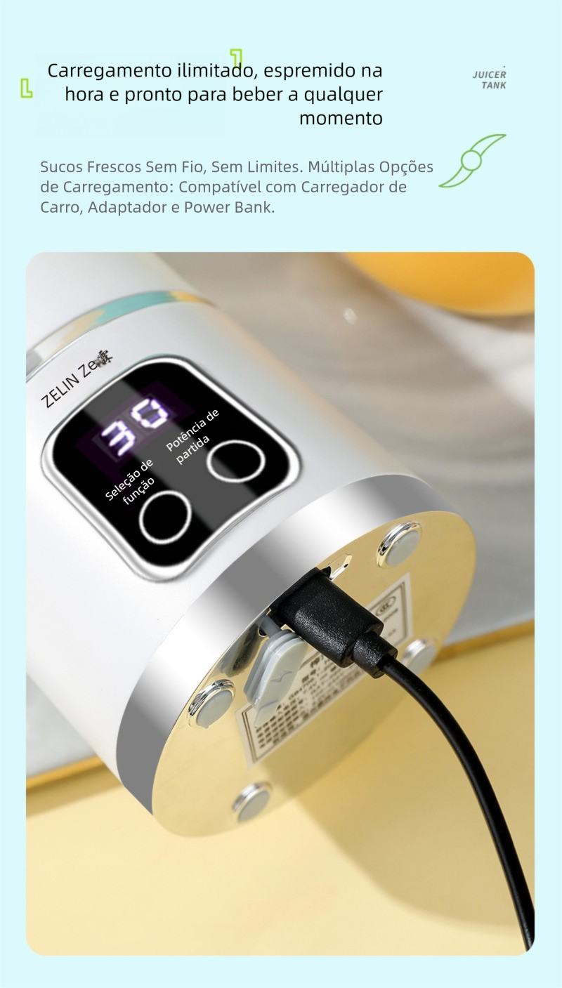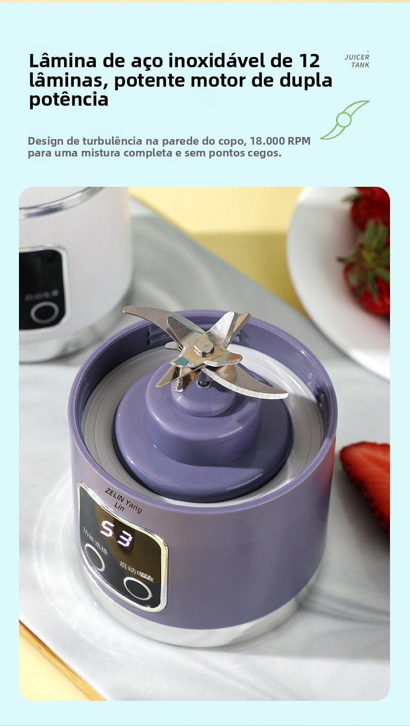Liquidificador Portátil Premium | Copo Espremedor de Sucos com Trituração de Gelo | Recarregável por USB | Ideal para Casa e Uso ao Ar Livre